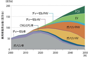 • 国際エネルギー機関(IEA)は2035年に世界の新車販売の50%以上がEVになると予測。日本もこの流れに乗る必要がある。